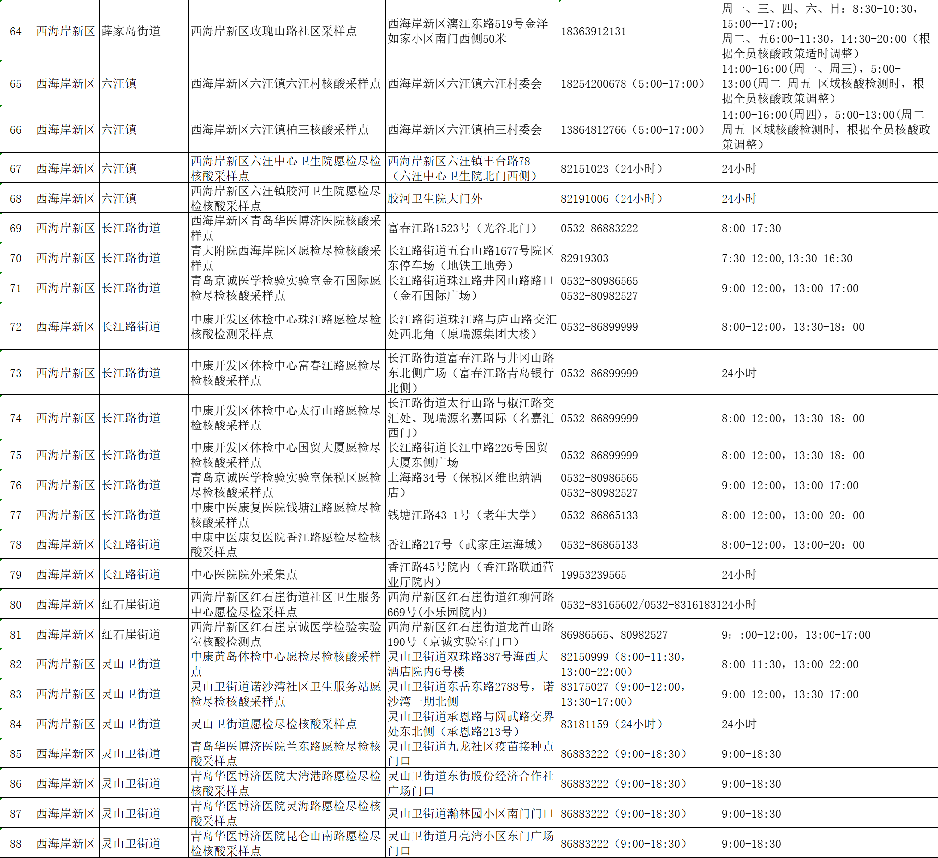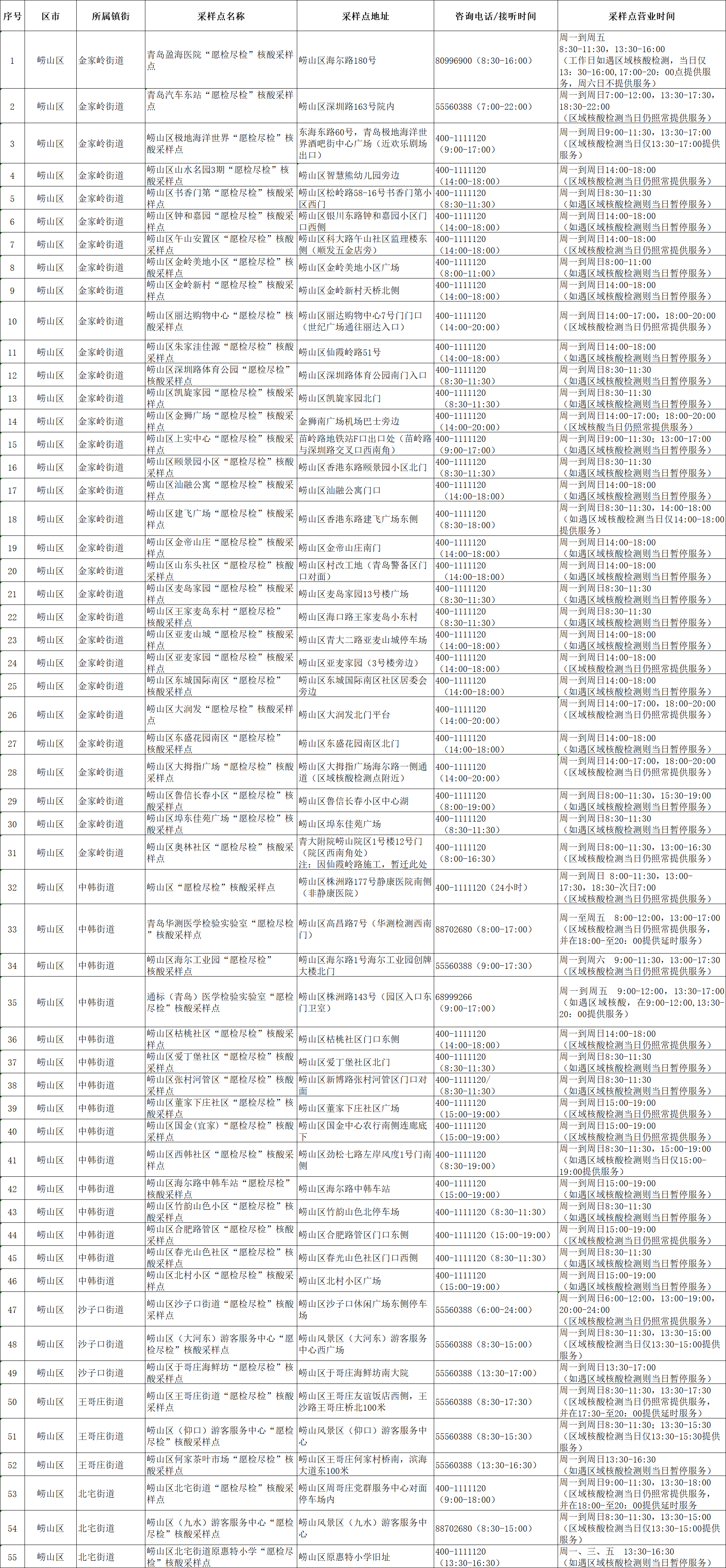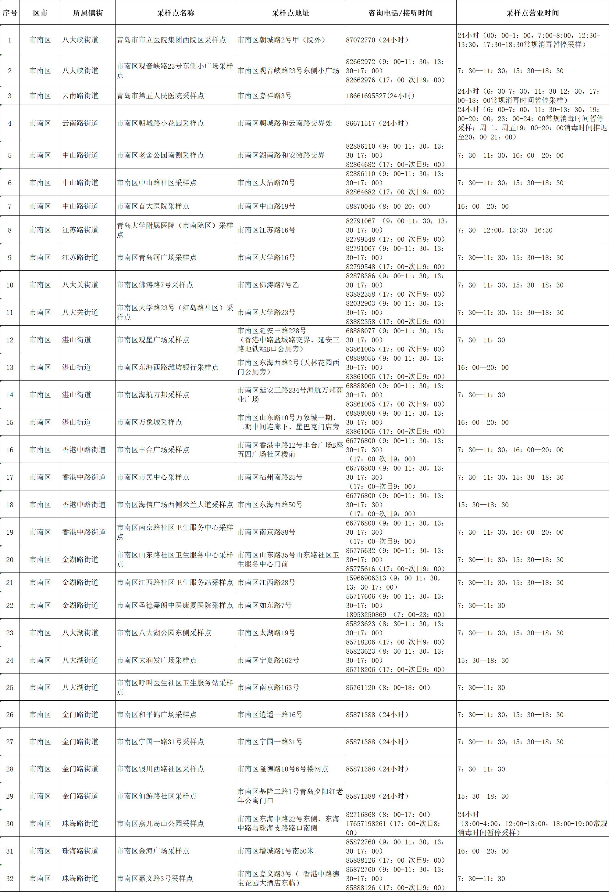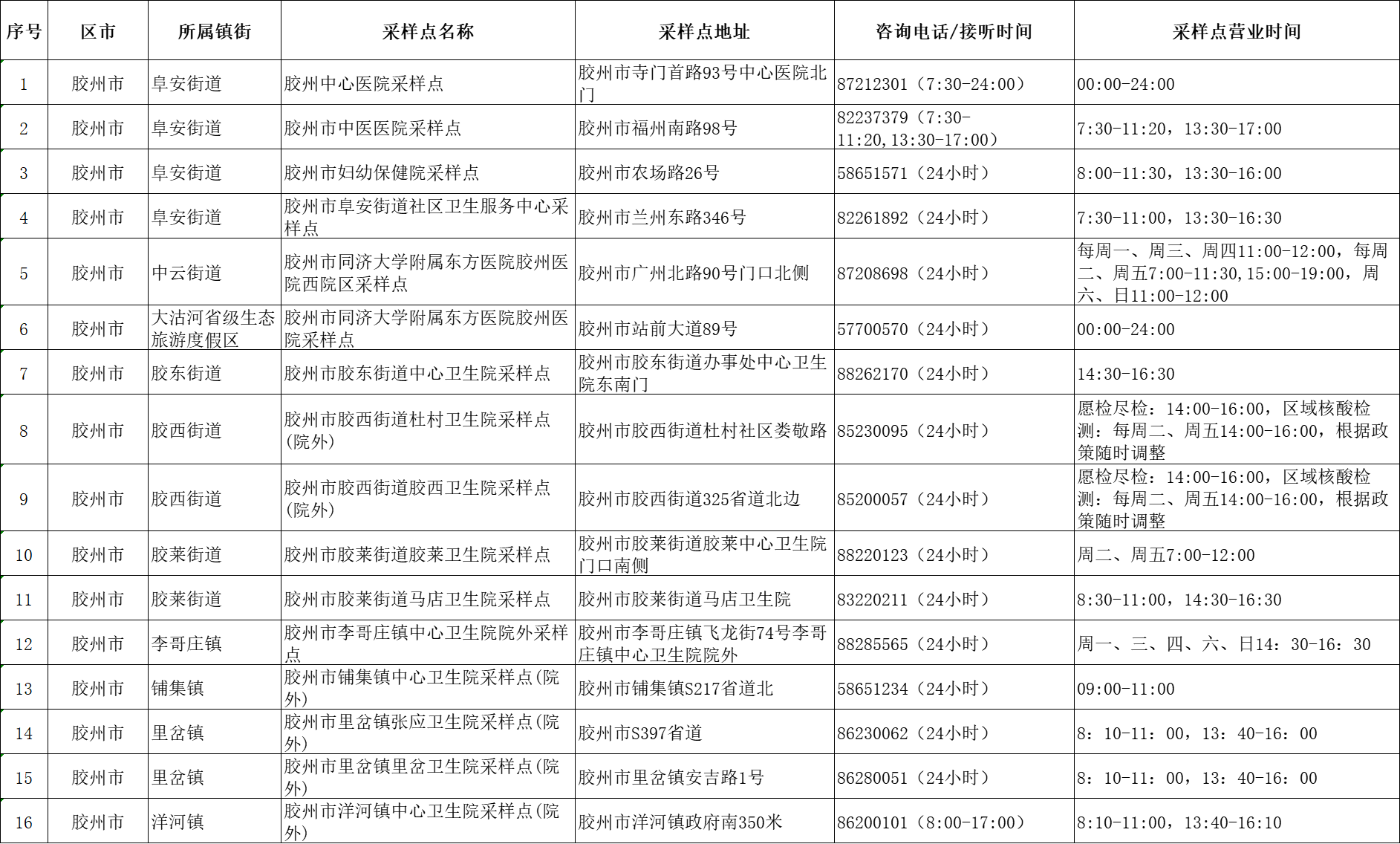 为满足广大市民朋友就近就便核酸检测“愿检尽检”需求,并根据工作实际对采样点布局和服务时间等进行动态调整和优化,现汇总公布最新采样点信息,供大家查阅。请您仔细查阅各采样点的地址、工作时间和检测报告查询出具等相关提示,合理选择,若有疑问请提前咨询。
