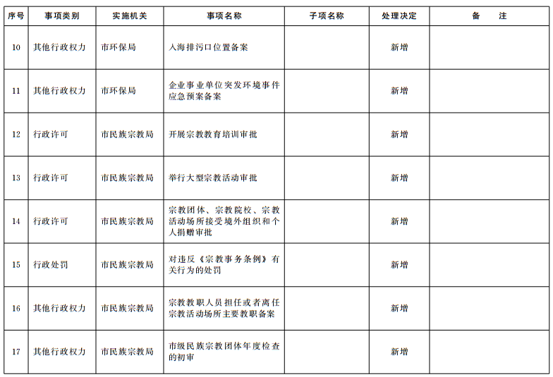 各有关部门和单位要认真做好衔接落实工作,对取消的事项不得截留或者变相实施,要制定后续监管措施,落实监管责任,切实加强监管;对下放管理层级的事项,要制定衔接落实方案,指导区、市部门(单位)实施好相关权力;对新增事项要优化运行流程,简化办事环节,缩短办理时限,规范自由裁量权;对整合、调整的事项要将名称、编码、设定依据、法定时限等要素及时调整到位。各有关部门和单位要及时调整行政权力清单,在本部门(单位)网站公布,并按照要求编制公开有关服务指南和业务手册;要根据法律法规规章调整情况和“放管服”改革要求,动态调整行政权力清单,确保清单准确性、权威性。