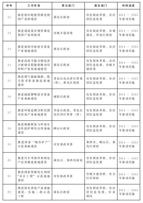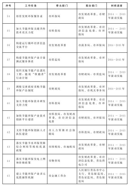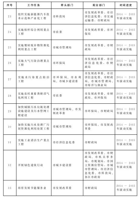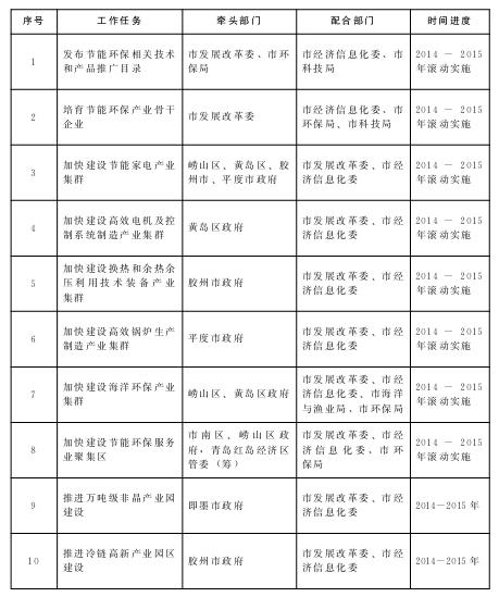 节能环保产业发展重点任务分工及进度安排表