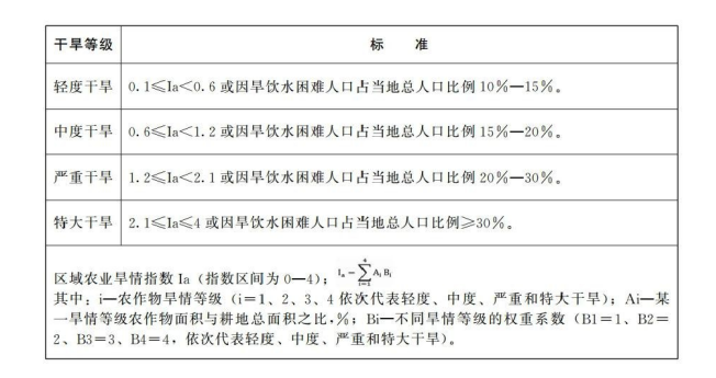 9.1.4设区城市(指设区的市主城区)干旱等级判定标准