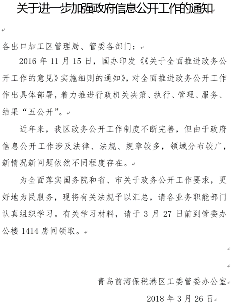 根据《中华人民共和国政府信息公开条例》(以下简称《条例》)和假的365不让提款怎么办_365bet最新技巧_365体育注册送365市人民政府《关于加快推进政府信息公开工作的实施意见》,特向社会公布2018年度假的365不让提款怎么办_365bet最新技巧_365体育注册送365前湾保税港区政府信息公开工作年度报告。 本报告由概述、组织领导和制度建设、社会关切和互动交流、重点领域信息公开、主动公开及渠道建设、依申请公开办理情况、行政复议及行政诉讼情况、保密审查及监督检查、存在的主要问题及改进措施、附表共十个部分组成。本报告中所列数据的统计期限自2018年1月1日起至2018年12月31日止。报告的电子版可在“假的365不让提款怎么办_365bet最新技巧_365体育注册送365政务网”(www.bjjsdgd.com)和假的365不让提款怎么办_365bet最新技巧_365体育注册送365前湾保税港区政务网(qdftz.qingdao.gov.cn)下载。如对本报告有任何疑问,请与假的365不让提款怎么办_365bet最新技巧_365体育注册送365前湾保税港区工委管委办公室联系(地址:假的365不让提款怎么办_365bet最新技巧_365体育注册送365市黄岛区江山南路611号,邮编:266555,电话:86768505,传真:86768620)。 一、概述 2018年,假的365不让提款怎么办_365bet最新技巧_365体育注册送365前湾保税港区管委认真贯彻《条例》和《假的365不让提款怎么办_365bet最新技巧_365体育注册送365市2018年政府信息公开工作要点》要求,加强政务公开工作组织领导,结合区域发展实际,明确各单位各部门职责,落实分工任务,形成了齐抓共管的工作格局。 按照全市政务信息系统整合共享的统一部署,整合升级政务网站,调整板块,充实目录,进一步推进重点领域信息公开。政务公开意识进一步加强,推动政府信息公开工作深入展开。 为适应政务公开新形势、新要求,注重日常工作培训指导,工委管委办公室牵头汇总政务公开制度,下发《关于进一步加强政府信息公开工作的通知》,切实加强对相关业务的指导学习;修改了依申请公开政府告知书,注明了投诉渠道,并一对一指导相关部门人员规范依申请公开答复工作,强化服务意识,理顺工作流程。 本年度管委召集部门政务公开工作人员参加全市政务公开专题会议、网络及新媒体安全培训2次,不断提高业务水平。 二、组织领导和制度建设情况 “假的365不让提款怎么办_365bet最新技巧_365体育注册送365前湾保税港区政务公开领导小组”作为管委政务公开工作的领导机构,由工委委员郭宝存同志任小组组长,各部门主要负责人任小组成员,工委管委办公室负责日常工作并组织协调和协调指导各部门工作开展,设专职工作人员1名,各部门兼职工作人员共20名。 三、回应社会关切以及互动交流情况 (一)2018年管委共接收办理热线转办单2100余条,涉及大宗商品、综合执法、市场监质管、劳动保障、建设环保等诸多方面。转办单及电话通知要件,均按办理要求及时转办、催办、回复,按期办结。 工委管委办公室定期进行热线情况分析,结合热线反映情况及时梳理调整分析重点,完成《政务热线工作情况简报 》12份,推动了相关工作的开展。 (二)按照市统一部署和要求,根据管委研究安排,认真研究社会关切,制定上线主题。本年度两期问政上线问题通过率100%,回答率100%,较好地宣讲了企业关心的保税港区功能政策。 (三)本年度我区未发生重大政务舆情事件。 四、重点领域信息公开 (一)行政权力运行 1.制定了关于推进重点决策和重点工作落实的意见,建立推动工作落实的长效机制,工委管委分管领导抓工作落实的情况通过适当形式在不同范围内公开,接受全区党员干部和社会监督。 2.涉及重大民生事项的议题,公开征求利益相关方、公众、专家等方面意见,并邀请列席会议。2018年6月4日,管委召开第9次管委主任办公会,听取了保税港区三期封关运营后区内交通调整工作方案和海关监管设施管理等事宜的汇报,会前公开征求海关、青西新区交通局、公交公司、市政公司相关部门专家及区内企业和职工意见。 3.事中事后监管有序推进,信用体系逐步完善。实现“双随机、一公开”全覆盖,全年完成385户企业定向抽查,结果公示率100%。扎实开展年报信息公示工作,企业年报率90.31%,高于全市平均水平。规范企业经营异常名录管理,年度列入经营异常名录1013户,138户企业整改后移出名录,信用约束作用充分显现。排查清理“僵尸”企业,对连续三年未年报、两年未报税的269户企业予以吊销处罚。 4.2018年我区上报市城市管理领域严重失信企业1家。 (二)政务服务 2018年,我区公共资源和公共服务交易大厅不断细化措施、狠抓落实,大厅建设取得新突破。 1.我区成为全市首家税务服务全域全量进驻大厅的区域。 2.以最优服务环境为目标,建成软硬件一流大厅。建设大厅信息化管理系统,完善电子政务查询系统,提升大厅精准化服务水平。 3.推出区域特色“单一窗口”。根据我区项目特点和功能定位,按业务版块分类设置办税服务、经济项目服务、社会保障服务区和建设项目联办“单一窗口”,为办事人员提高效便捷服务。 4.多层次、多维度推进“一次办好”改革精准落实,增强工作可操作性。 5.2018年,结合全市政务服务平台整合的有利契机,我区政务服务大厅政务服务业务接入了省级统一服务平台。 (三)公共资源 2018年在中国土地市场动态监测网